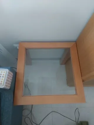 Mesa auxiliar madera y cristal