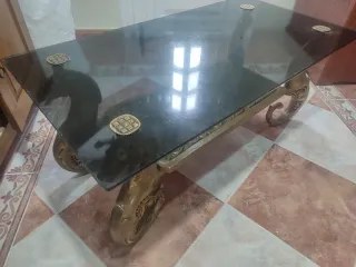Mesa centro vintage cristal y metal dorado
