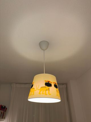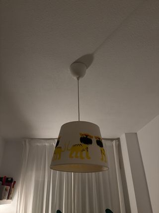 Lámpara colgante con un divertido diseño de leones amarillos sobre fondo blanco. Perfecta para una habitación infantil. - Pantalla de tela. - Estampado de leones. Lámpara con plafón con divertidas mariposas volando. 15€/unidad