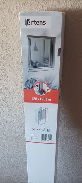 Vendo mosquitera de aluminio para ventana, literalmente nueva, sin abrir. Características: Protección natural contra insectos con la ventana abierta Tejido de fibra de vidrio «PerfectView» en color antracita para una visión óptima También se puede instalar entre la ventana y la persiana (con un espacio intermedio mínimo de 12 mm) Marco de aluminio resistente con revestimiento en polvo Transpirable y resistente a los rayos UV y a la luz Fácil de montar sin necesidad de taladrar; incluye kit completo de montaje. Incluye instrucciones y material de montaje. Medidas: máx 100 x 120 cm Color: blanco