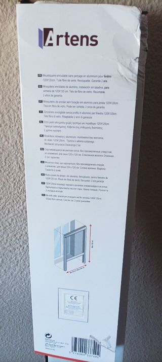 Mosquitera enrollable de aluminio con malla. - Ancho: 1.48 metros. - Alto: 1.14 metros. Tela y uno de los ganchos anclaje están para cambiar. Incluye los perfiles laterales. Enrolla PERFECTAMENTE