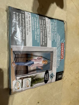 Hola!! Mosquitera para puertas de la marca Powerfix Profi, ideal para mantener los insectos fuera. Se instala fácilmente. - Sistema de fijación adhesivo. - Para puertas de hasta 100 x 220 cm. - Cierre magnético. - Color negro. - Sin estrenar. Cualquier duda pregúntame Gracias!
