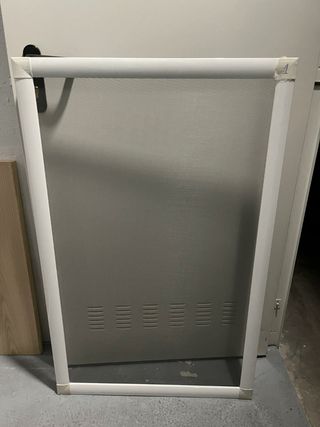 Mosquitera tipo estore, se puede adaptar a diferentes medidas, Max.130x160 puede acortarse en altura y anchura. Producto sin estrenar, comprado en JYSK, color blanco. Tengo 4 iguales, 18€ por unidad