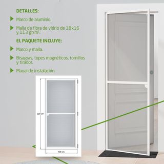 Mosquitera para puertas de hasta 100 x 220 cm. Color blanco. - Fácil instalación. - Incluye instrucciones de montaje.