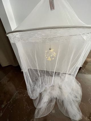 Vendo mosquitera blanca para cama o cualquier sitio Es redonda Tiene una luz dentro que va a pilas Ideal para habitación infantil