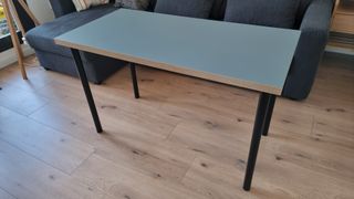 Escritorio LAGKAPTEN con patas ADILS de IKEA. Medidas: 120 x 60 cm. Tablero gris efecto madera, patas negras. Fácil de desmontar. Presenta algún pequeño defecto de uso (ver foto). En buen estado general. Comprado en 2023 (~3 años de uso). PVP: ~39 €. No dispongo de factura. Solo recogida en Móstoles.