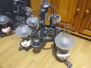 Conjunto de lámparas con un diseño elegante. - Estructura de metal. - Pantallas de cristal.