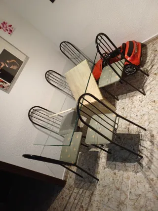 Se vende mesa de comedor para 8 comensales, extensible hasta 10 personas. Ideal para familias o reuniones. La mesa está en buen estado y es muy práctica gracias a su sistema extensible. Cerrada 135X90 extensible a 2,35. Incluye 4 sillas en buen estado. Se regalan otras 2 sillas adicionales porque están desencoladas
