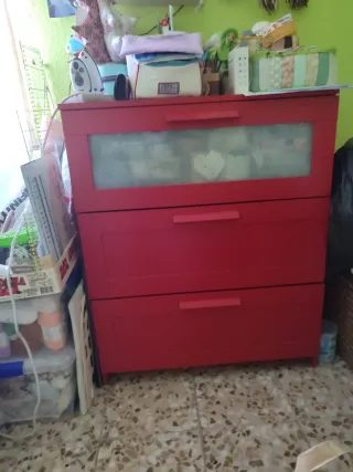Preciosas cómodas de madera buen estado. La cómoda roja tiene tres cajones el primero el frente es de metacrilato. El precio de la cómoda son 60€. La otra cómoda es beige, tiene cinco cajones con el frente de metacrilato. El precio de la cómoda son 45€. No sé envían, tienes que recoger en Móstoles.