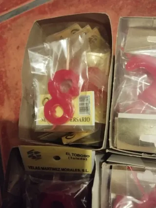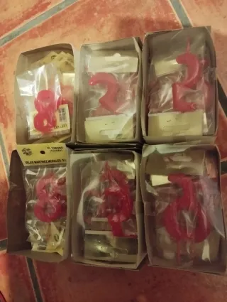 Conjunto de velas para tartas con forma de números. Ideales para celebrar ocasiones especiales. No las he contado pero hay entre 50-60 unidades. - Velas con forma de número. - Color rojo vibrante. Números 8 y 5