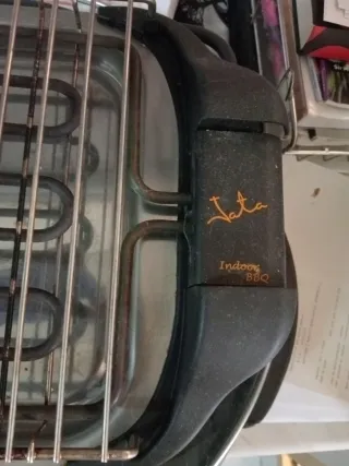 Asador eléctrico con acabado en metal y plástico. - Rejilla de metal. - Base de plástico.