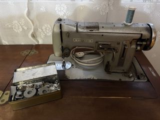 Máquina de coser antigua de la marca Sigma, con un diseño clásico y elegante. Ideal para coleccionistas o para quienes aprecian la artesanía tradicional. - Cuerpo principal en color negro. - Base de madera con detalles decorativos dorados. - Volante lateral para el control manual.