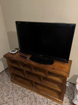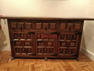 Mueble de madera maciza con un diseño antiguo y robusto. Ideal para complementar tu salón o recibidor. (Recogida en Rubi no se envía) - Estructura sólida y duradera. - Múltiples compartimentos para almacenamiento.