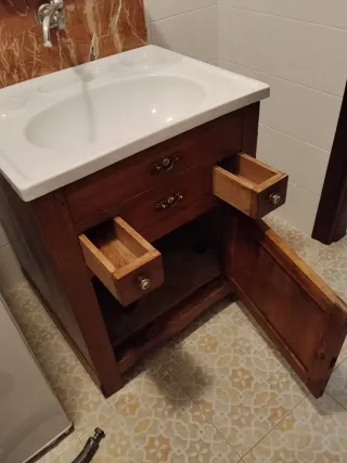 Mueble de baño antiguo madera y mármol