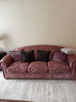 Sofá antiguo de tela rosa