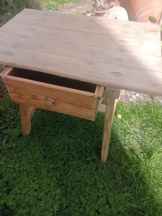 Mesa de madera antigua con cajón