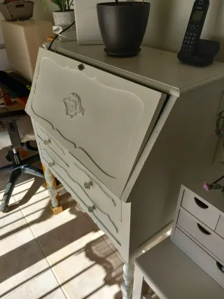 Escritorio antiguo de madera pintado de blanco