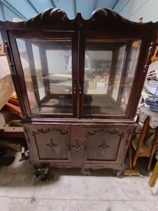 Mueble vitrina antiguo madera y cristal
