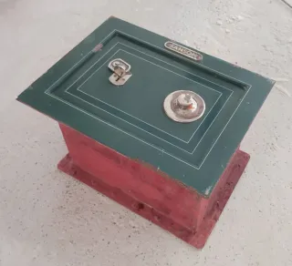 Caja fuerte vintage de la marca Sanson, con un diseño clásico y elegante. Ideal para coleccionistas o para añadir un toque retro a tu hogar. - Incluye su llave original. - Mecanismo de combinación visible. Tenemos la llave, pero no sabemos su combinación, así que no podemos abrirla. Creemos (esperamos) que está vacía. Pesa: 20kg.