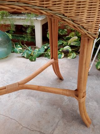 Elegante revistero de estilo antiguo, perfecto para organizar tus revistas y publicaciones. - Diseño con estructura de madera. - Laterales y base de ratán tejido. - Asa superior curva para facilitar su transporte.