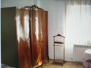 Precioso armario antiguo con un diseño clásico y elegante. - Fabricado en madera. - Acabado en un cálido tono marrón. - Detalles ornamentales en la parte superior.