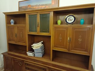Mueble de salón de estilo antiguo con un diseño clásico y elegante. Precio bajo para el primero que venga y se los lleve y los desmonte (Las sillas van juntas en pack 4 en total) -Preguntar medidas sin compromiso y por el mueble que les interese - Fabricado en madera de alta calidad y algunos otros no tan buena - Amplio espacio de almacenamiento con cajones y estantes.