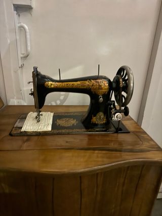 Máquina de coser Singer clásica, un modelo icónico con detalles ornamentales. - Diseño vintage. - Base de madera. - Detalles dorados. Se le puso motor como se ve en las fotos. PRECIO NEGOCIABLE