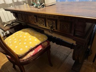 Mesa de estilo castellano, antigua y robusta. Su diseño clásico aporta un toque de elegancia a cualquier espacio. - Fabricada en madera maciza. - Acabado en tono oscuro. Precio de subasta 5.500,- EUR Como la siguiente subasta de muebles de este tipo es en 2 años y no podemos esperar tanto vendemos la mesa a un precio casi regalado.