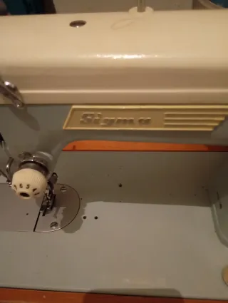 Máquina de coser Sigma de estilo vintage. Un clásico para trabajos de costura. - Diseño retro en tonos beige y gris. - Fabricada con materiales duraderos como metal y plástico. Lo único que necesita es el motrocillo