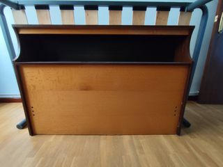 Cabecero de madera antiguo. Hay mesita de cama a conjunto si interesa en otro anuncio a parte. Las medidas son 20cm profundo 119cm ancho y 81cm alto. Hay posibilidad de tener dos iguales