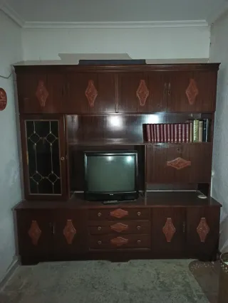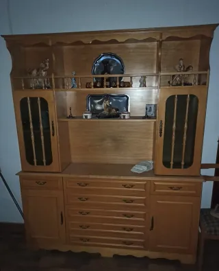 Mueble de salón de estilo antiguo, con una combinación de madera y cristal. -Se pueden vender por separado (preguntar precio) - Diseño clásico y elegante. - Amplio espacio de almacenamiento con cajones y puertas. - Estantes interiores para exhibición.