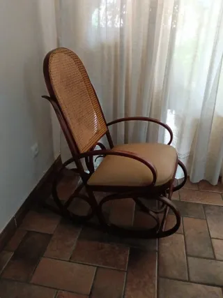 Mecedora de estilo antiguo, con un diseño clásico y elegante. - Asiento tapizado recientemente. Vendo por falta de espacio