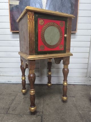 Precioso mueble frances siglo XIV antiguo con detalles musicales , luz interior - Acabado en madera noble con toques dorados. - Diseño floral pintado a mano. - interior de espejo viselado con sus llaves correspendientes Una joyita para anticuarios