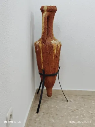 Ánfora de terracota diseño antiguo y con su pie.