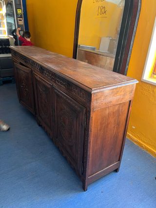 Precioso aparador antiguo con detalles tallados a mano. Una pieza única para dar un toque de elegancia a tu hogar. - Diseño clásico con puertas y cajones. - Elaborado con madera de castaño de alta calidad. - Ornamentación detallada en toda la estructura.