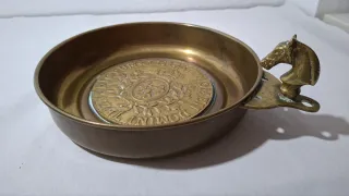 Antigua limosnera de bronce y latón. En el asa lleva la figura de un caballo y en el interior la reproducción de una moneda antigua de Luis XVI. Medidas: 28 ancho, 23 diámetro, 10 altura asa, 4,5 altura plato. En buen estado, tiene dos abolladuras, se ven en las últimas fotos. espejo murano bambú mantilla porcelana plata contrastada Siam arquitecto tipo ratán modernista duralex benditera table ware bordado a mano lámpara opalina espejo artdeco forja terraza industrial étnico Tupperware broche colección flexo sol luna mandala amuleto china cloisonné vainica belen bronce retro tarot firmado mueble Japan buda artnouveau 13