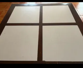 Elegante mesa de centro con un diseño moderno y funcional. Combina a la perfección con cualquier estilo de decoración. - Tablero dividido en cuatro secciones. - Estructura de madera robusta. - Acabado en tonos marrones y blancos.