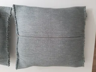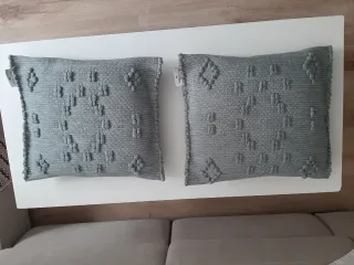 Set de dos cojines decorativos de la marca Banak. - Diseño con relieve y textura. - Acabado en tono verde grisáceo. - incluido relleno.
