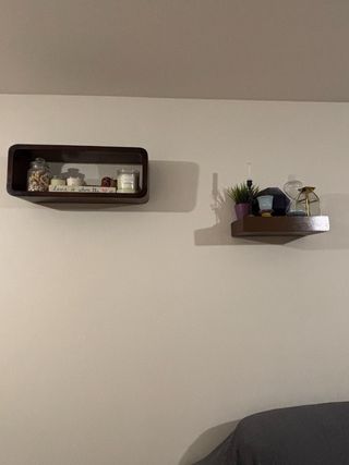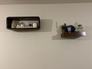 Conjunto de dos estanterías flotantes de la marca Banak. No se venden por separado - Estructura de madera. - Van a conjunto con la estanteria que tengo en otro anuncio. Puedo venderlas por separado - Dimensiones de la pequeña: 45cm * 23 * 8 cm altura - Dimensiones de la grande: 67 cm * 20 cm * 27 cm alto. La parte interior son 63 cm * 20 cm * 21 cm alto
