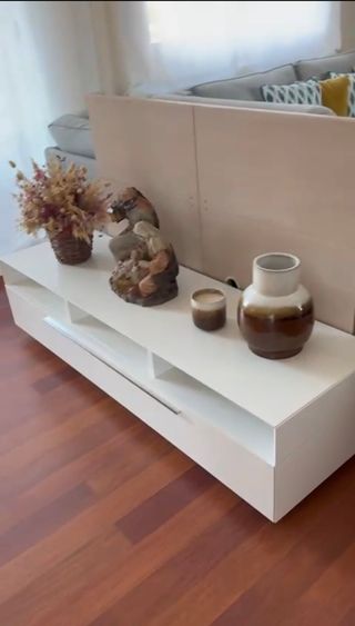 Mueble de TV de BANAK comprado en noviembre de 2025. Se compró en tienda por 535€ + 49€ de envío a domicilio. En total por 584€. Lo vendo con una rebaja de 235€. Está en perfecto estado, como nuevo, y se vende por reconfiguración de la casa por la llegada de un bebe. En persona es muy bonito. Medidas: 150cm de ancho, 40cm profundo y 61cm de alto. Se entrega en Madrid en Paseo de la Castellana. Por medidas habría que tener una furgoneta. Viene montado. #banak #muebletv #mueblesalon #decoracion #mueble #mueblemadera #muebletvmadera