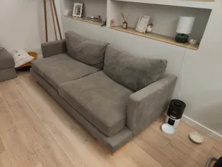 Sofá de dos plazas de la marca Banak, en perfecto estado. Su diseño moderno y cómodo lo hace ideal para cualquier salón. - Tapicería de tela. - Color beige y gris. - asientos extensibles Entrega a finales de febrero.