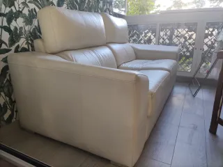 Sofá de tres plazas de la marca Banak. - Tapicería de piel. - Color blanco.