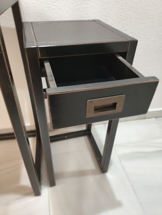 Conjunto de mesas ausxliares nido cuadradas de Banak Importa. MEdidas: 40x40x75 cms y 30x30x66 cms. Precio original: 600€