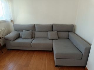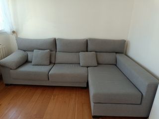Sofá gris espacial en muy buen estado y bien cuidado, de cuatro plazas con chaise longue, totalmente lavable y desenfundable. Los cojines de la zona de la cabeza son regulables para mayor comodidad. Los asientos son extensibles y puede funcionar como sofá cama para 2 personas. De la tienda Banak. ‼️ PRECIO NO NEGOCIABLE