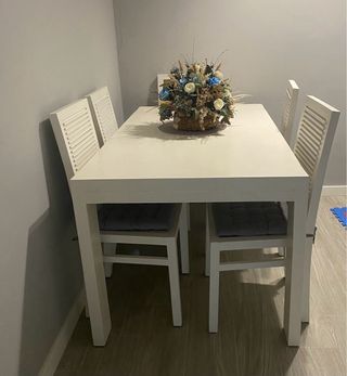 Conjunto de mesa extensible y cuatro sillas de la marca Banak. Están como nuevas. - Mesa extensible. - Incluye 4 sillas.