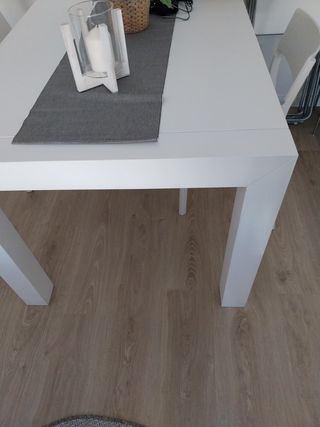 Mesa extensible 140cm x 90 cm. Es extensible a 190 cm. Esta valorada en 600 euros. Esta en perfecto estado. Se vende por espacio . Banak . Modelo Gael . color blanco