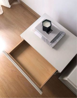 Mesitas de noche lacadas en blanco de la marca Banak :) Son muy elegantes. Tiene algun defecto menor debudo al uso. Se pueden apreciar en las fotos.