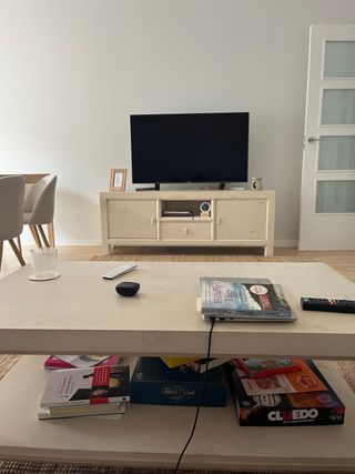 Conjunto de mueble para televisión y mesa de centro. - Diseño moderno y funcional. - Acabado en tonos neutros. de Banak importa. nuevo 60€la mesa de centro 150€ el mueble TV 200€ todo el conjunto.