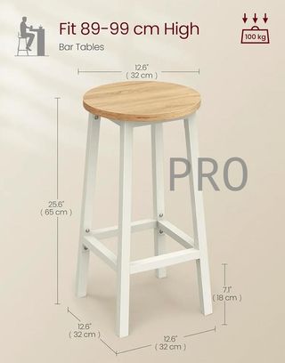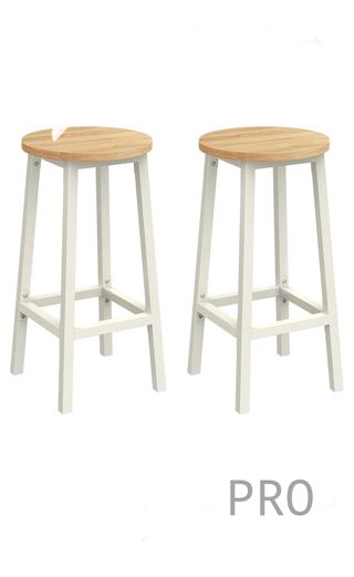 Taburete de bar, juego de 2, taburetes de bar, taburetes de cocina con estructura de metal, altura 65 cm, con reposapiés, para cocina, salón, comedor, roble beige y blanco LBC032W09