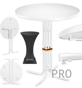 Mesa de bar gastronómica plegable KESSER® | Placa de acero inoxidable con recubrimiento en polvo | pies regulables en altura | Mesa de fiesta Ø 70cm | Interior y exterior | Mesa de recepción con cubierta incluida | Mesa plegable blanca 8